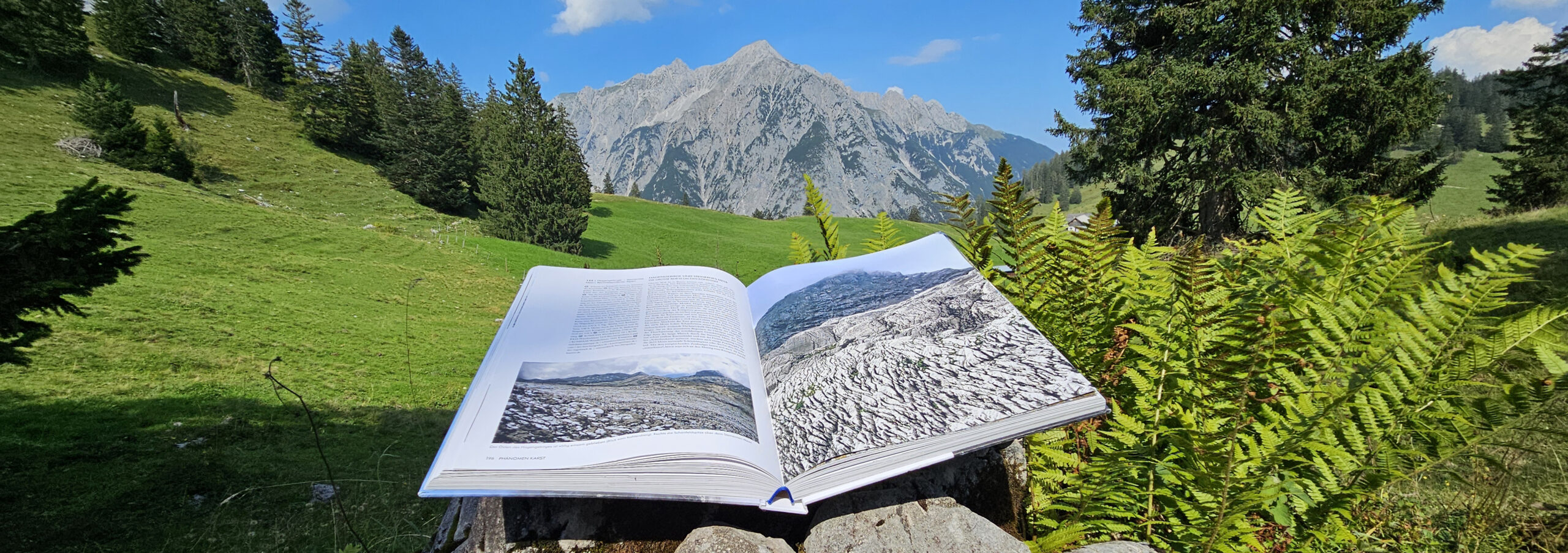 Das 380 Seiten starke Buch zeigt uns Berge, die im Meer entstanden sind, Saurierspuren und eigenwillige Gletscher, Schluchten und Höhlen, die Welt der Neandertaler, verborgene Römerstraßen oder die Social Media der Urzeit.