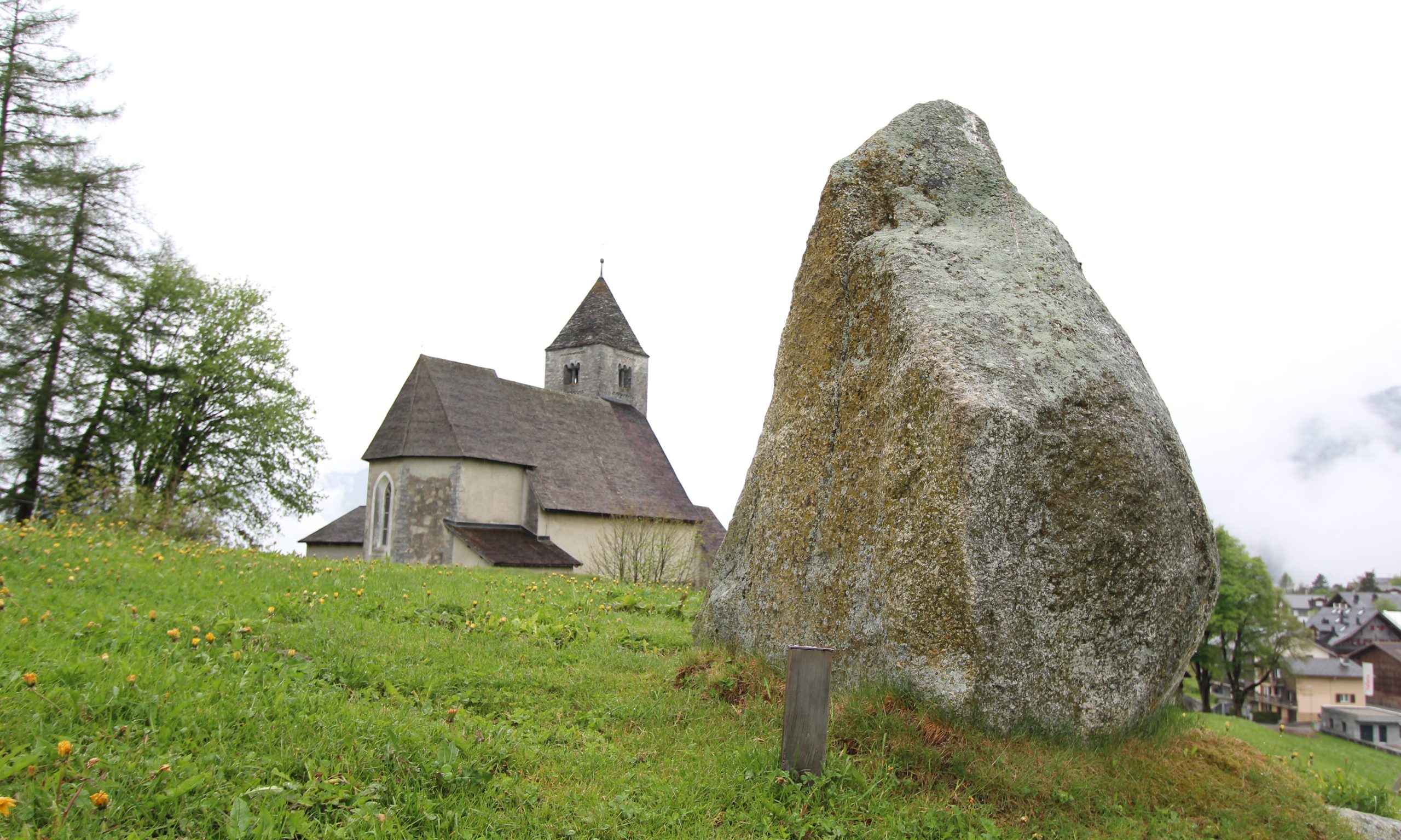 Im Süden des Dorfes steht die urspünglich um 1300 erbaute St.-Remigius-Kirche, die Wandbilder aus dem 15. bis 17. Jahrhundert birgt, am Rand der Planezzas-Wiese mit ihren geheimnisvollen Menhiren. Dahinter erhebt sich La Mutta, ein 1256 m hoher, bewaldeter Hügel, auf dem sich Schalensteine, moosgrüne Mauerreste aus der Bronzezeit und der berühmte „lachende Megalithiker“ verbergen. Ein Rundweg und mehrere Pfade führen durch den Parc La Mutta, über den eine Tafel am Parkplatz informiert; für einen Besuch des mystisch anmutendend Geländes sollte man mindestens 1:00 h einplanen.