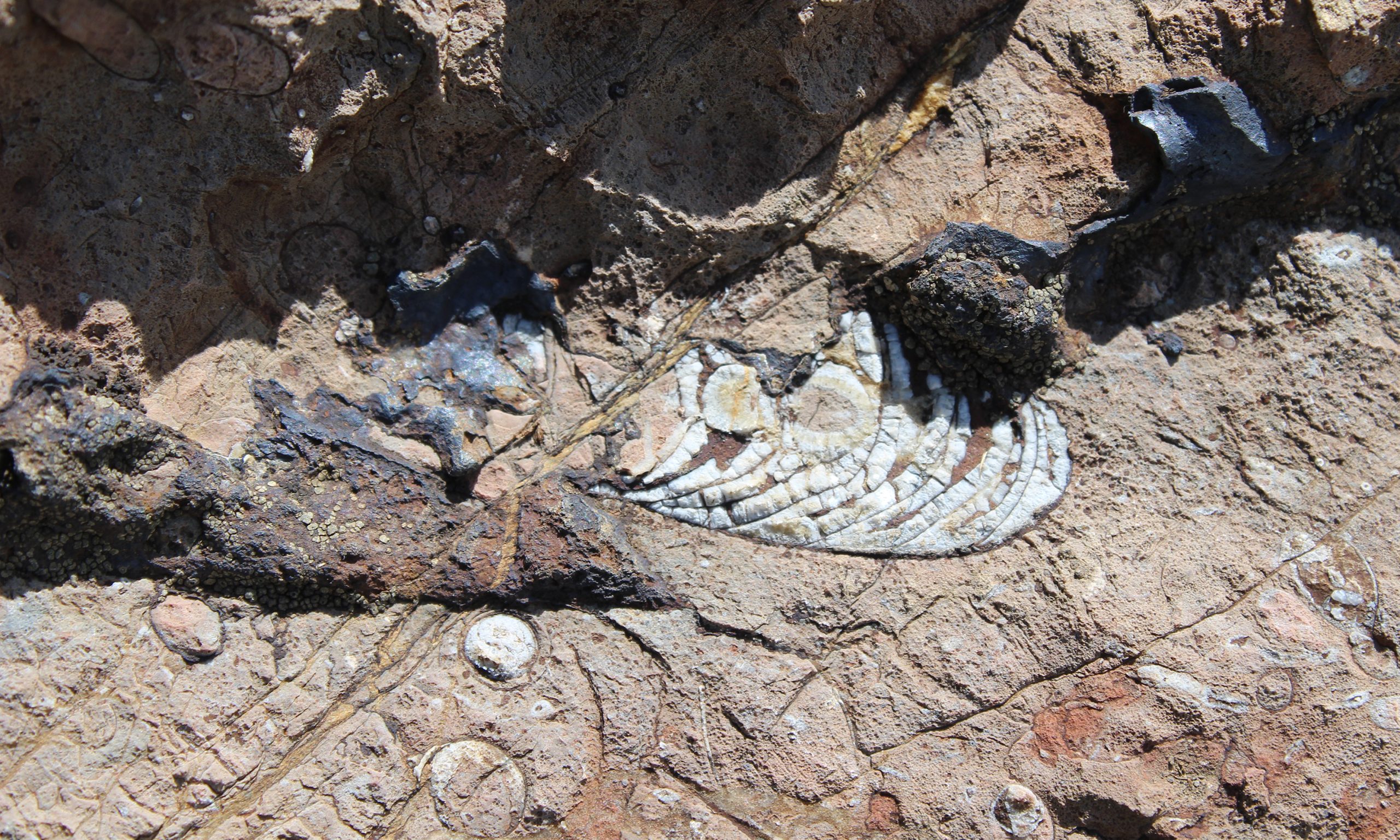 Nicht nur mittlerweile versteinerte Lebewesen, sondern auch dunkle Eisen- und Mangankrusten entwickelten sich vor 430 Millionen Jahren auf dem Meeresboden.