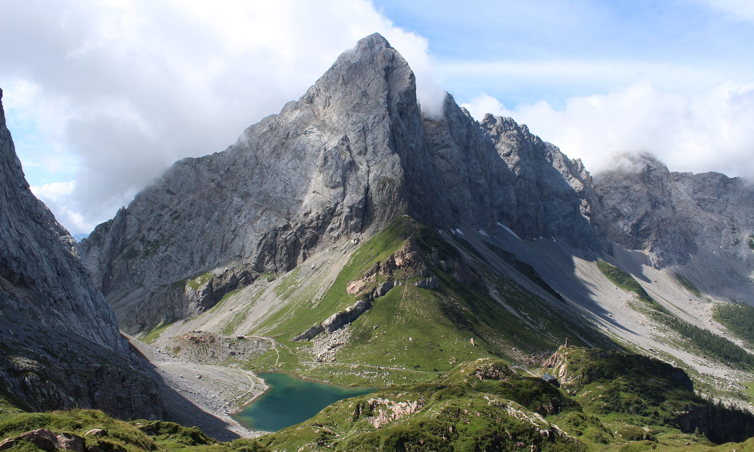 Von der Wolayerseehütte steigen wir auf dem Pfad Nr. 438 auf den Rauchkofel (2460 m); 1:30 h.