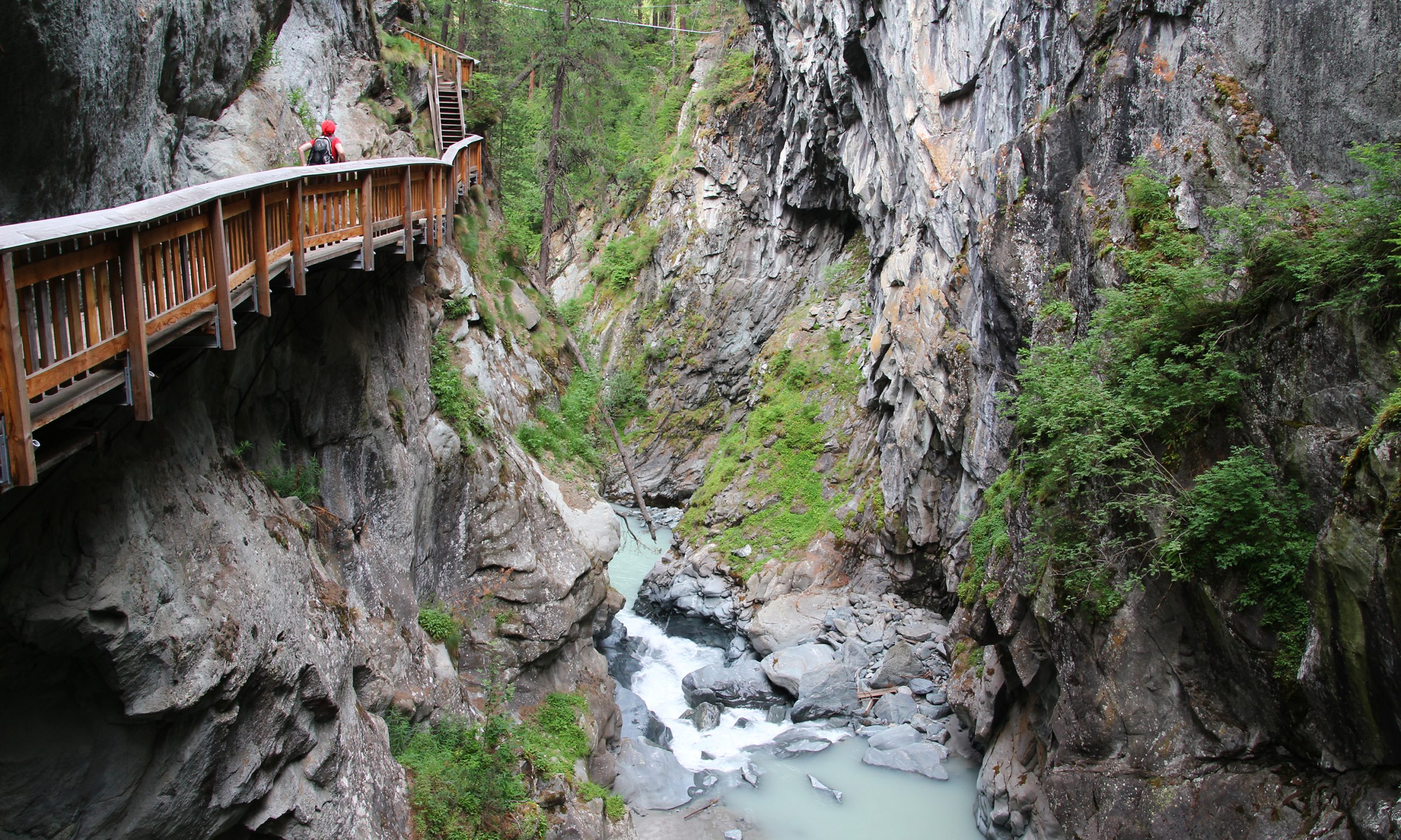 Auf soliden Stegen durchqueren wir das spritzige Naturwunder im Süden von Zermatt.